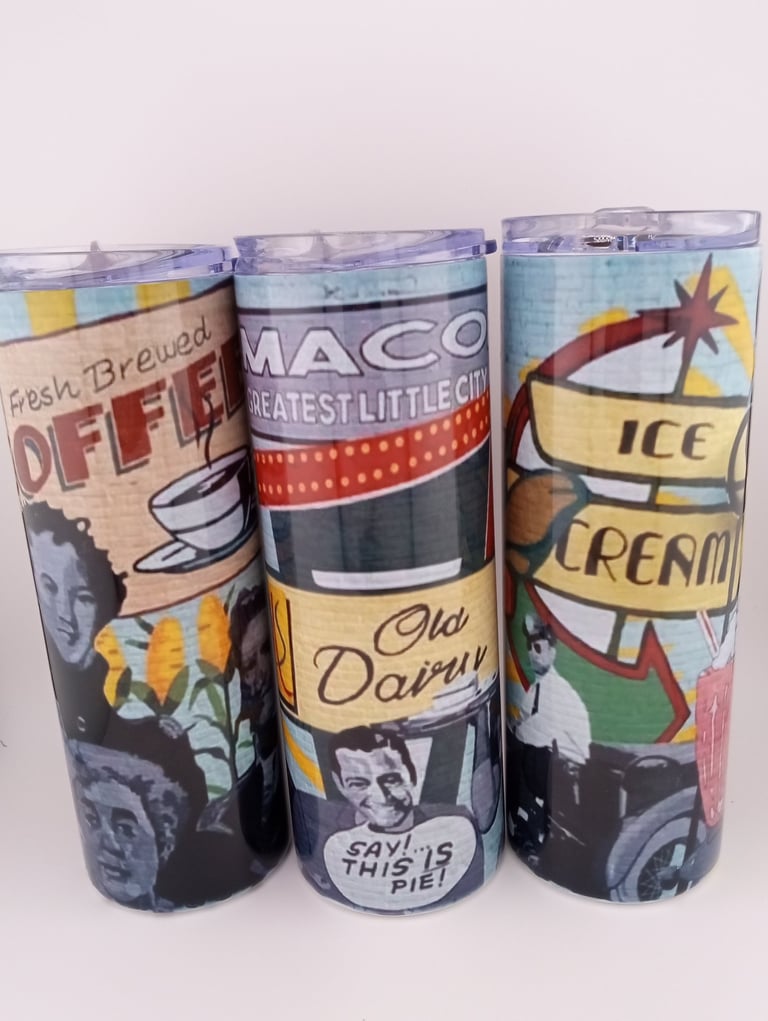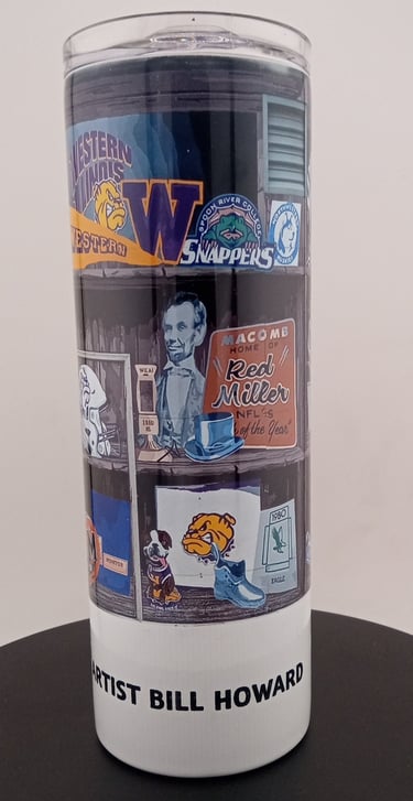 Celebrate your roots and sip in style with this locally inspired tumbler series, featuring vivid prints of Macomb’s downtown heritage murals. Each mural—painted by gifted local artists—captures the soul of the town through scenes of resilience, craftsmanship, and community pride. From historic storefronts to familiar landmarks, these designs reflect the spirit of small-town life and the stories that shaped it. Every tumbler becomes a canvas, carrying the warmth of Macomb’s past into your everyday moments.